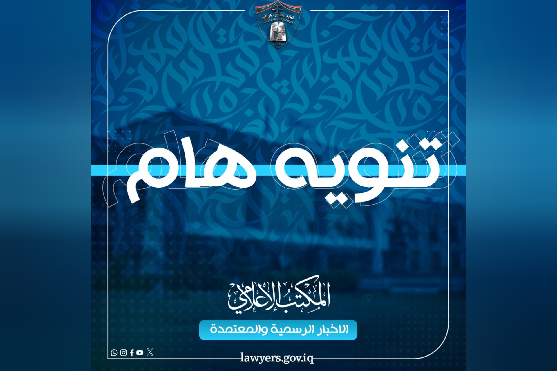 استنادًا إلى تعليمات مكاتب المحامين رقم (1) لسنة 2025 الصادرة عن مجلس نقابة المحامين العراقيين، تود النقابة التنويه إلى ما يأتي: