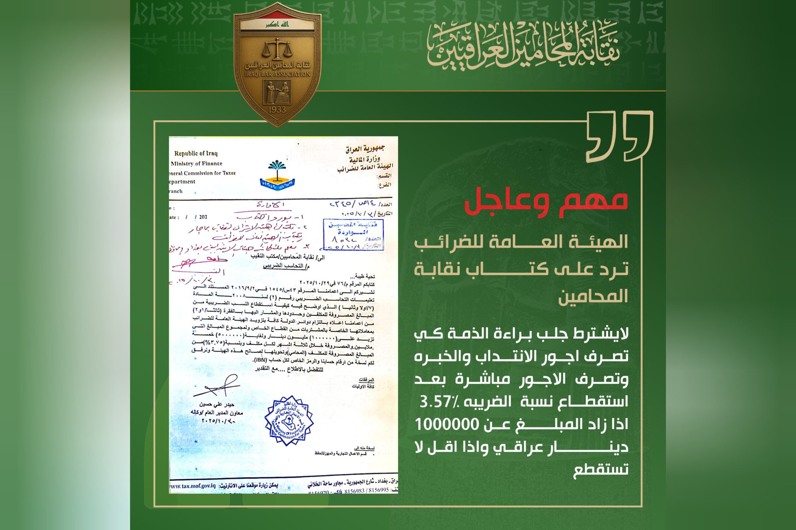 نقيب المحامين العراقيين تعلن عن استحداث مكتب إرشاد المحامين الجدد وتخصص مكانًا لهم لاستقبال المراجعين داخل مقر النقابة