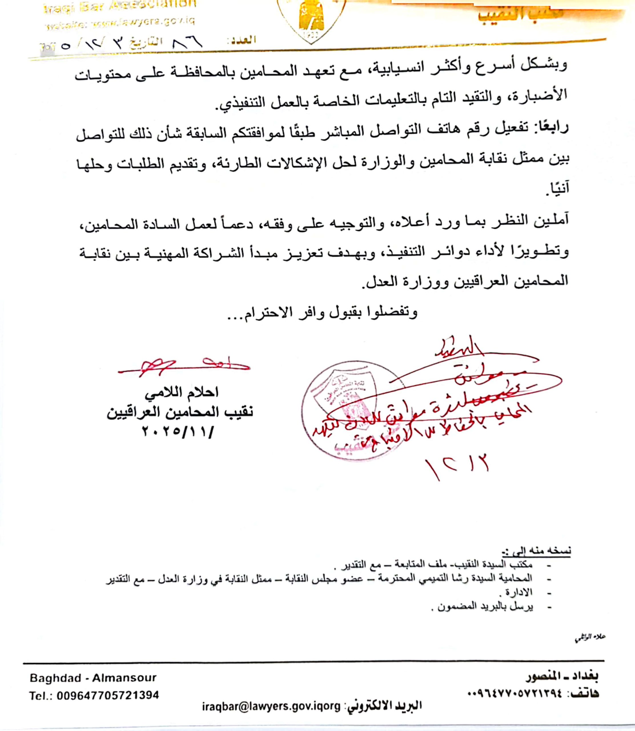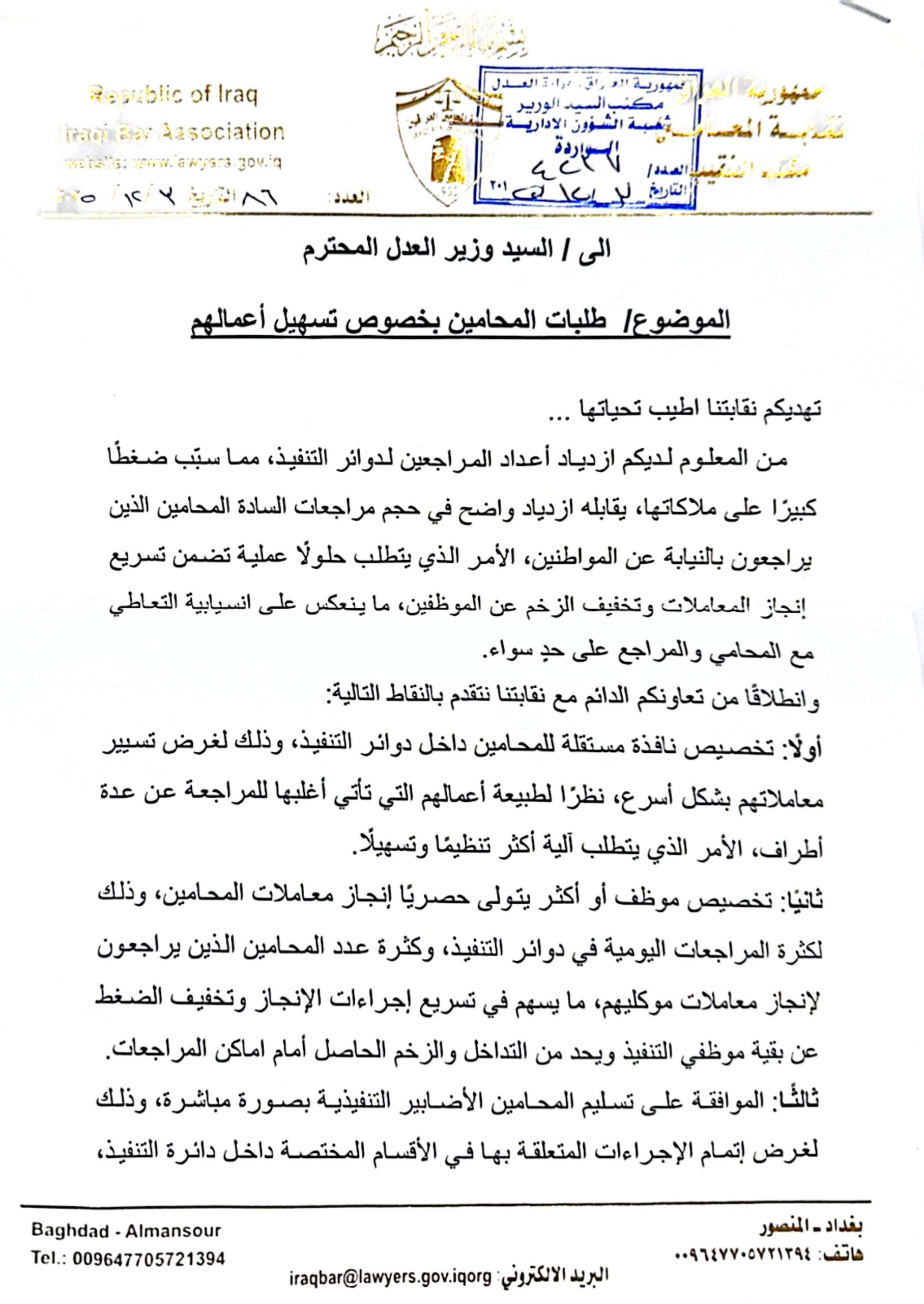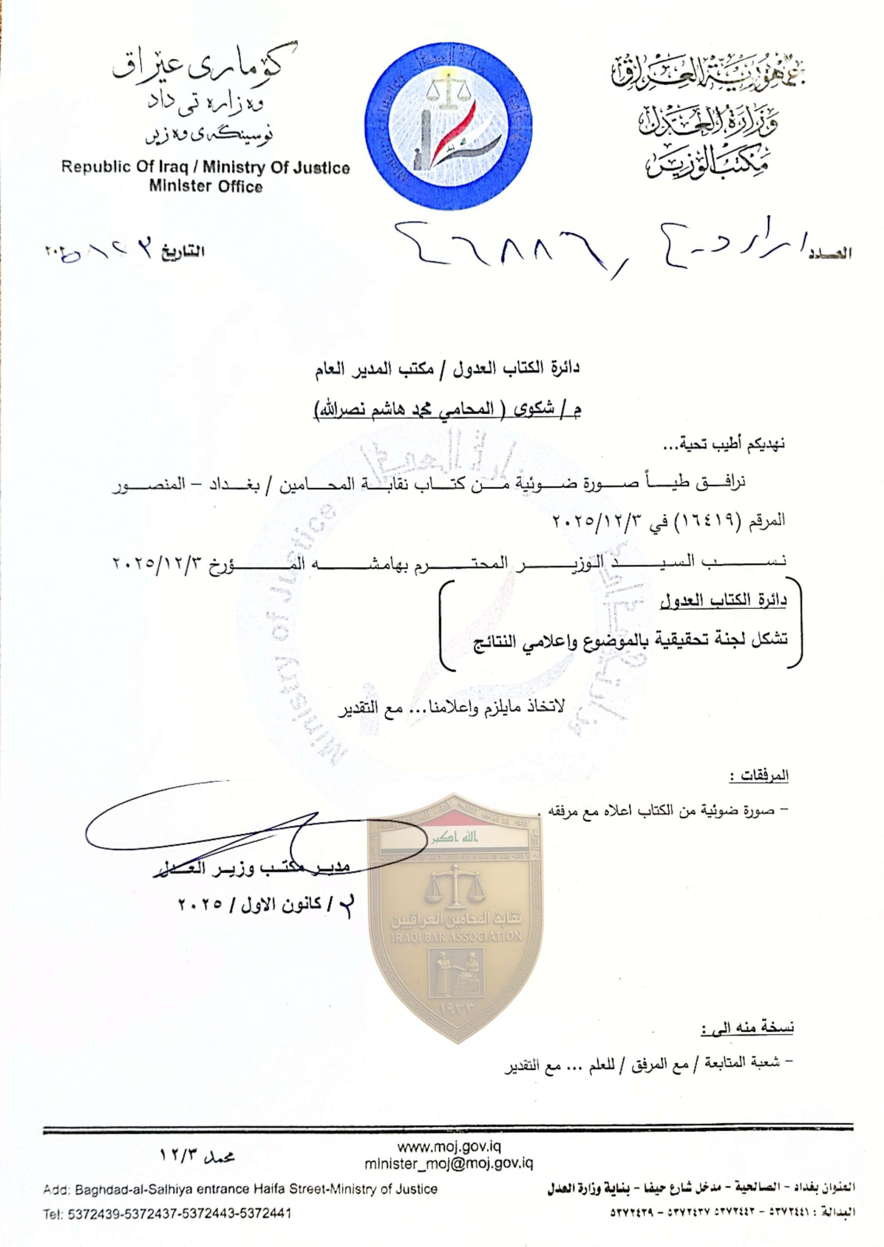 📍إجراء فوري بخصوص شكوى من أحد محامي البصرة: